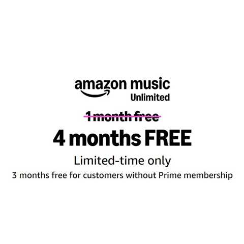 Sale $0.00 Reg.( $43.96 )Amazon – Amazon Music Unlimited 4 months free