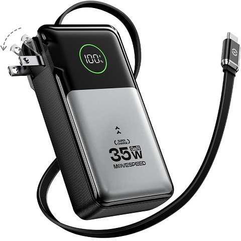Sale $15.99 Reg.( $49.99 )Amazon – MOVE SPEED 3 in 1 Portable Charger with Built-in Retractable 27.6in Cable and Foldable Wall Plug, 35w 10,000mAh GaN Fast Charging Power Bank, Travel Essential Battery Pack for iPhone 17/16/15,Galaxy