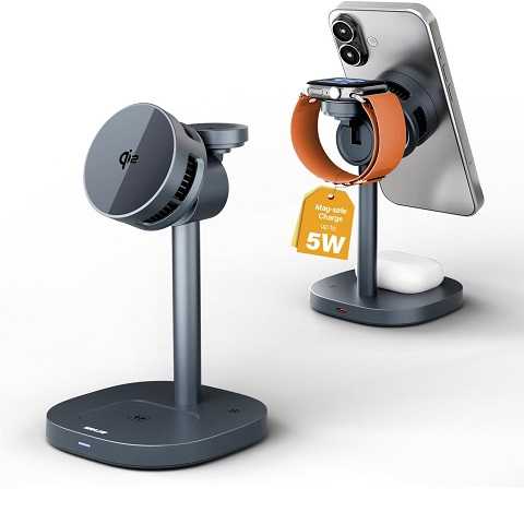 Amazon – 2025 New 3 in 1 Wireless Charger Stand Compatible with MagSafe, 15W Qi2 Fast Charging Station for Apple Devices with Active Cooling, Magnetic Charger for iPhone16/15/14/13/12, iWatch, AirPods, GrayGet Deal