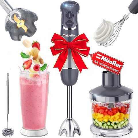 Amazon – Mueller Multistick 5-in-1 Immersion Blender Handheld,12 Speed Hand Mixer-Turbo Boost,Heaviest Duty Copper Motor,Titanium reinforced Blades Hand Blender,Milk Frother Wand,Whisk,Beaker,Chopper,GreyGet Deal