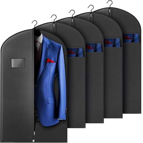 Amazon - 5 Pack 40-inch Suit Bag Garment Bag for Travel and Storage, Garment Bags for Hanging Clothes with Zipper and Visible Transparent Window, Black