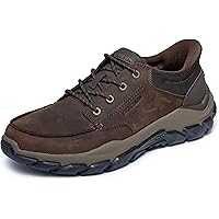 The Skechers Men’s Santoro features Hands Free Slip-ins® technology for an easy fit and Skechers Goga Mat Arch™ supportive cushioning. Designed with Skechers Air-Cooled Memory Foam® cushioned comfort insole and a Relaxed Fit®, it offers a roomy comfort fit at the toe and forefoot.