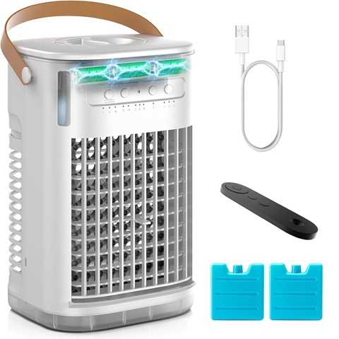 Sale $71.89 Reg.( $71.89 )Amazon – Mini Air Conditioner, Portable Air Conditioners w/Remote, 5400mAh Built-in Battery, 1.2L Water Tank & 2 Ice Boxes, Auto-off Timer, Evaporative Air Cooler With 3Speeds, Desktop Fan For HomeOutdoors