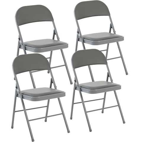 Amazon – DUMOS 4 Pack Folding Chairs with Padded Cushion and Back – PU Leather Stackable Portable Dining Chiars Set, for Home and Office, Conference, Wedding, Party, Patio, Garden, for Indoor Outdoor, GreyGet Deal