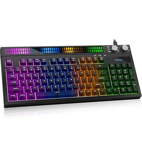 Amazon – SABLUTE Quiet Gaming Keyboard with Sound-Sync RGB LED Display, 94-Key Wired PC Gaming Keyboards for Pro Gamers, Tactile Mechanical Feel, Anti-Ghosting, Volume Control Knob for PS5/Xbox/PC, BlackGet Deal