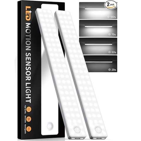 Amazon - 13inch Under Cabinet Lighting, 2500mAh Motion Sensor Light Indoor, USB Rechargeable Battery Operated Closet Light, Dimmable LED Cabinet Lights, Under Counter Light for Kitchen (2-Pack)