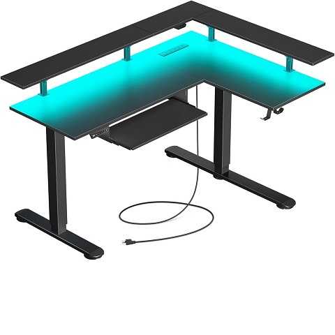 Amazon – Rolanstar L Shaped Standing Desk with Keyboard Tray, Height Adjustable Corner Desk with LED Light & Power Outlet, Electric Sit Stand Computer Desk with Monitor Stand, BlackGet Deal