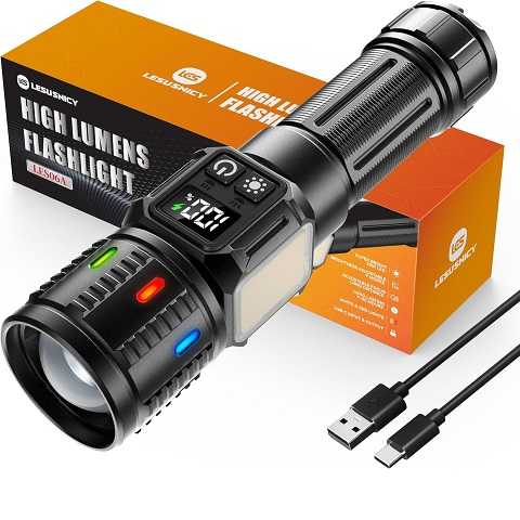 Amazon – Rechargeable Flashlights High Lumens 10000, Super Bright LED Flash Light Long Lasting USB C LCD Display, Daul Light Source & Buttons with Red Light, for Camping Hiking Emergency Home GiftGet Deal