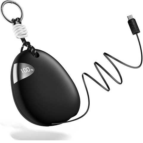 Amazon - Vivilumens Power Bank 10000mAh Portable Charger with Built in Cables,Outdoor Power Bank Fast Charging Retractable Wearable Travel Battery Pack with Keychains & Lanyard Compatible (Black)