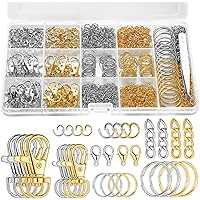 1130PCS Keychain Making Kit: Includes gold jump rings, key rings, extension chains, lobster clasps, and keychain clips. Each key accessory comes in different sizes, and all products are packaged in a sturdy plastic box with compartments