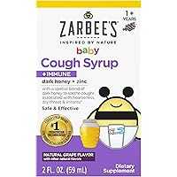 2-fluid ounces of Zarbee’s Baby Honey Cough Syrup + Immune Support* in a natural grape flavor for babies aged 12-24 months. Helps soothe coughs, calm & comfort dry, irritated throats, & supports your toddler’s immune system