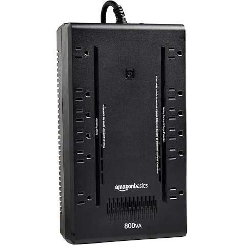 Amazon - Amazon Basics UPS Battery Backup & Surge Protector 800VA/450W, 12 Outlets, Standby Uninterruptible Power Supply, for Power Outage Protection, Compact, Black