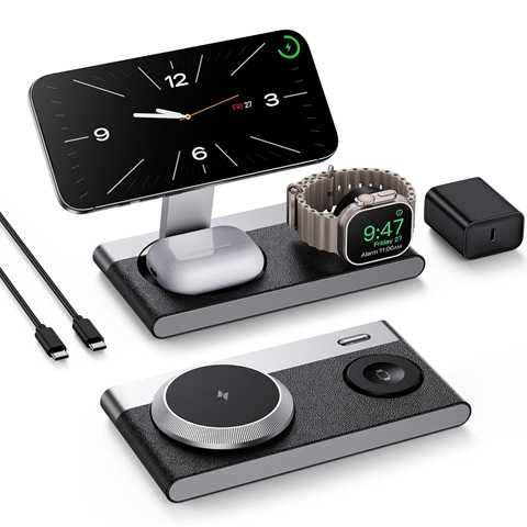 Amazon – Foldable 3 in 1 Magnetic Wireless Charging Station for Apple Devices, Leather-Like Fast Wireless Charger Dock with Night Light for Magsafe iPhone 17/16/15/14, Apple Watch, AirPod,Gift for MenGet Deal