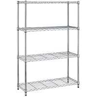 This storage shelf was made of heavy duty steel and coated with Eco-friendly, metal rack have excellent rust resistance. Weight limit of each wire shelving unit is 250 pounds, and the total weight limit of the whole shelf is 1000 pounds when equally distributed on feet levelers.