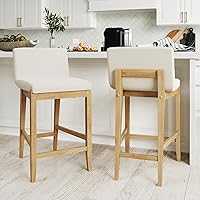 Gracie features a brushed natural brown wood wash on its solid legs and white linen upholstery, making it a suitable addition to your modern or farmhouse style kitchen. The wide, supportive backrest highlights an exposed wooden back that adds to its farmhouse feel.