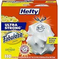 13 Gallon Tall Kitchen Garbage Bags-This package contains 110 Hefty Ultra Strong 13 Gallon Kitchen Trash Bags in White, Fabuloso Lemon scent. Toughness You Can Trust-Hefty’s strongest tall kitchen garbage bags deliver toughness you can trust with a secure, break-resistant drawstring and superior durability.