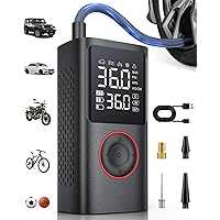 Powools portable air pump is born with a powerful motor and a high-performance chip, providing a maximum pressure of 150PSI and a strong airflow. This portable tire inflator for cars can pump up a standard car tire