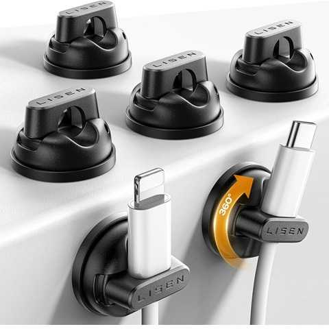 Amazon – 6-Pack Rotatable Cord Holder for Nightstand, LISEN 360°Rotating Magnetic Clips, No-Residue Strong Adhesive Cord Organizer for Desk, Phone Cord Holder for Home, Car, Office Desk AccessoriesGet Deal