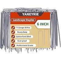• The 11 gauge 50 Pack landscape fabric staples are 6 inches long, the top width is 1 inch, the width below is 1.5 inch. The spikes can reusable and easy to store in your gardening shed for other projects Made of heavy duty hot-dip galvanized steel. Premium quality makes them durable and can be reused many times.