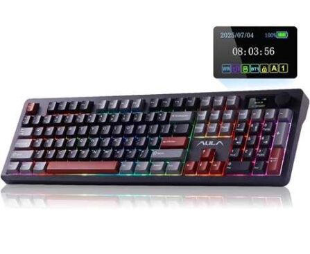 Amazon – AULA F106 PRO Wireless Mechanical Keyboard, 104 Keys Gaming Keyboard with Knob & Screen, Tri-Mode RGB Hot Swappable Creamy Sounding Computer Keyboards for PC/Laptop/Windows – Black RedGet Deal Sale $69.98Reg. $106.99 Free shipping with Prime or on orders of over $25. Take 30-Days Free Prime Trial. Shipping is free.