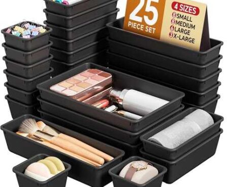 Amazon – 25 PCS Plastic Drawer Organizers Set, 4 Sizes Vanity Organizer, Makeup and Desk Drawer Organizer Trays, Organization and Storage for Makeup, Bathroom, Kitchen Utensils and Office (Black)Get Deal Sale $11.98Reg. $19.99 Free shipping with Prime or on orders of over $25. Take 30-Days Free Prime Trial. Free shipping with Prime or on orders […]