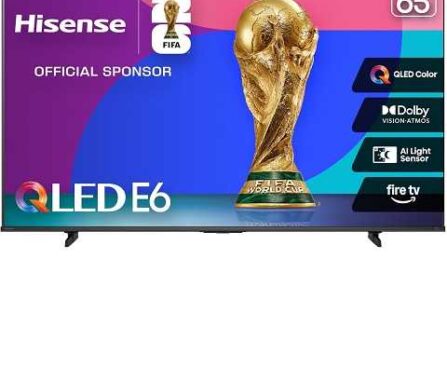 Amazon Sale $399.99 Reg.( $549.99 )Amazon – Hisense 65” E6 Cinema Series QLED 4K UHD Smart Fire TV (65E6QF, 2025 Model) – QLED, AI Light Sensor, Dolby Vision · Atmos, Voice Remote with Alexa, Motion Rate 120, HDR 10+ Adaptive, Game Mode Plus
