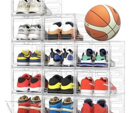 Amazon Sale $41.99 Reg.( $89.99 )Amazon – Pinkpum Upgraded Hard Shoe Storage Box 12 Pack X-Large Fit Size 12, Thicken & Sturdy Clear Plastic Stackable Shoe Organizer Box Closet, Sneaker Storage Display Case Holder Bins with Magnetic Door