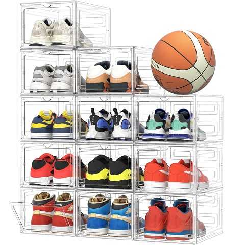 Amazon Sale $41.99 Reg.( $89.99 )Amazon – Pinkpum Upgraded Hard Shoe Storage Box 12 Pack X-Large Fit Size 12, Thicken & Sturdy Clear Plastic Stackable Shoe Organizer Box Closet, Sneaker Storage Display Case Holder Bins with Magnetic Door